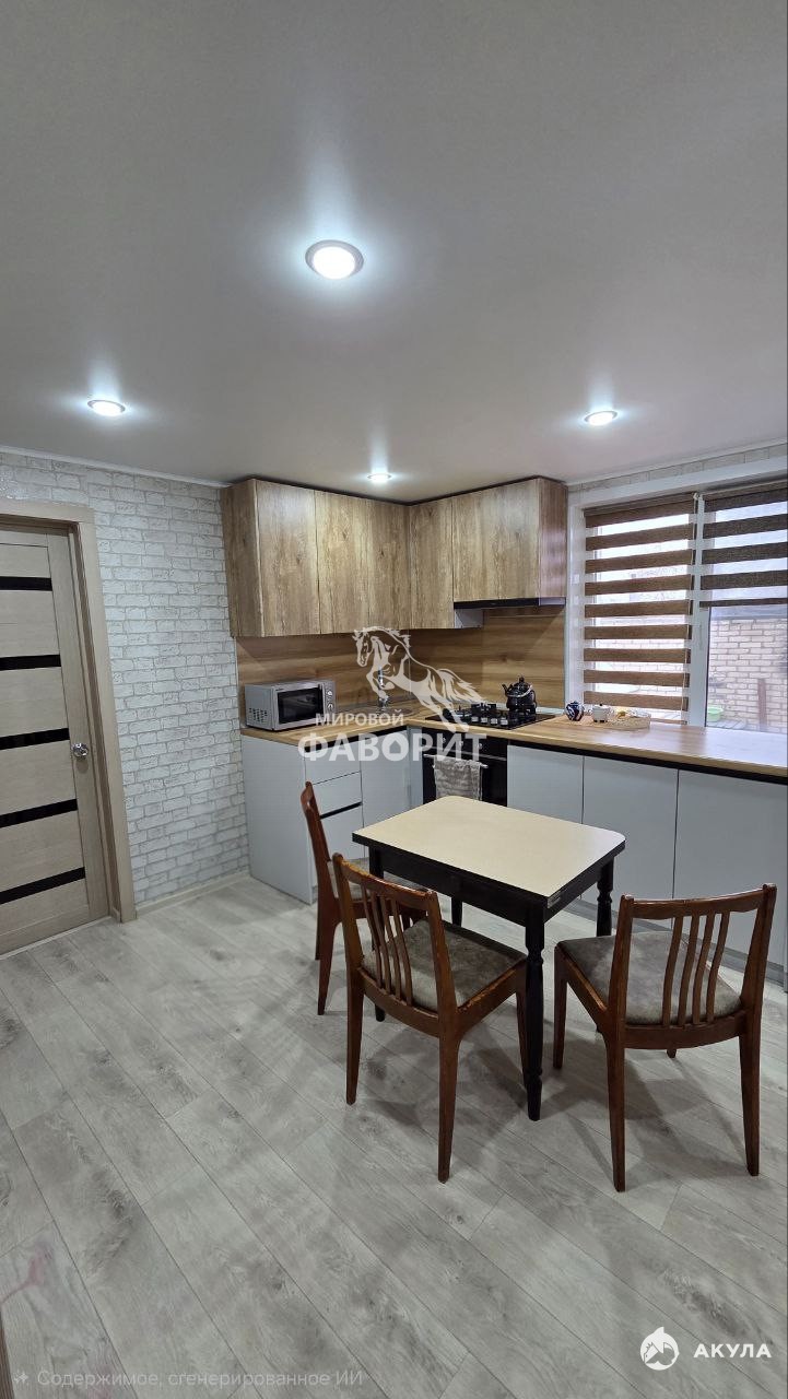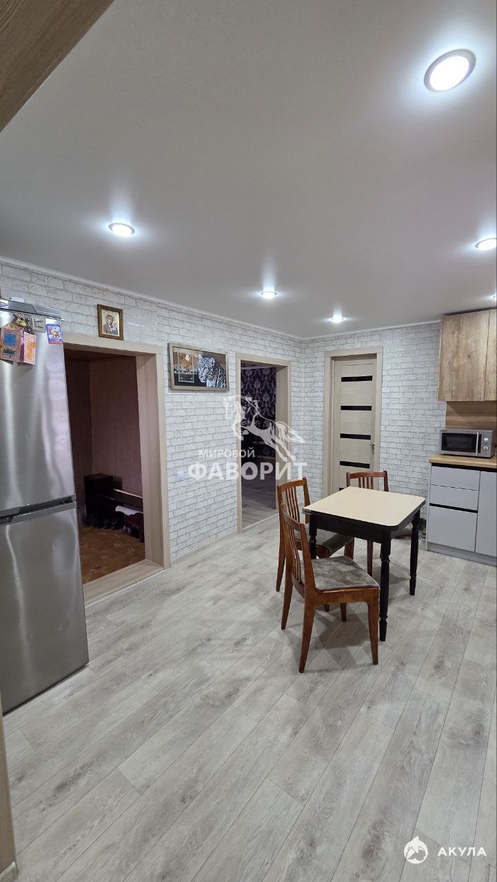 Внутри — качественный современный ремонт: новая электропроводка по всему дому, заливные полы на кухне, пластиковые окна, натяжные потолки. Комнаты изолированные, светлые и очень уютные.