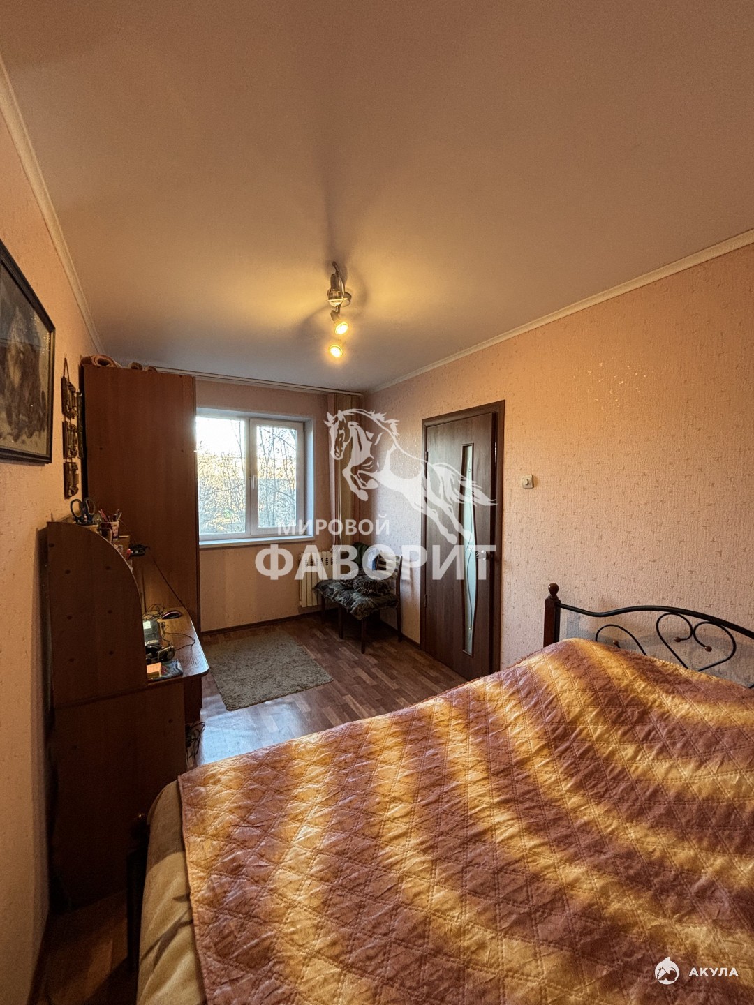 Площадь квартиры составляет 45 м² — достаточно пространства для комфортного проживания. Частично меблированная: кухонный гарнитур, шкаф, кровать.